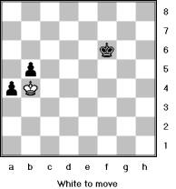 black's two pieces bxa6 2.Kxa3 Kb7 3.Kb4 Kc6
